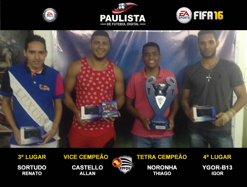 É CAMPEÃO!!! Thiago Noronha, competidor carioca, consagra-se Campeão Paulista de Futebol Digital (FIFA 16). Parabéns Thiago Noronha!!! Em breve Paulista FIFA 17!